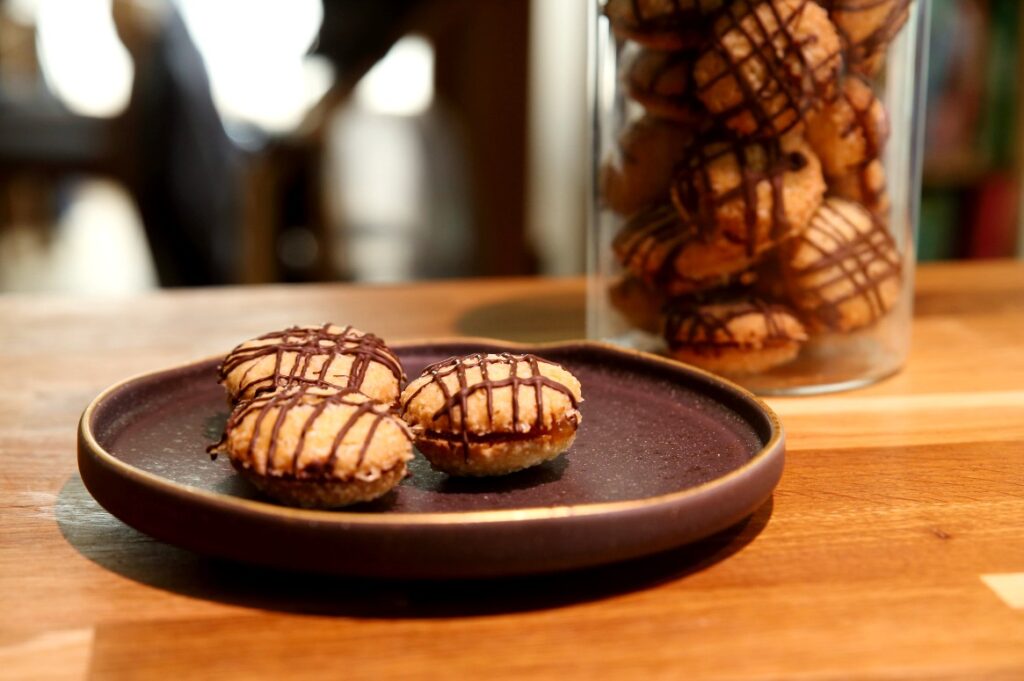 - Bake at 180 degrees for 8 minutes. Let the cookies cool before transferring them to a wire rack to cool completely.