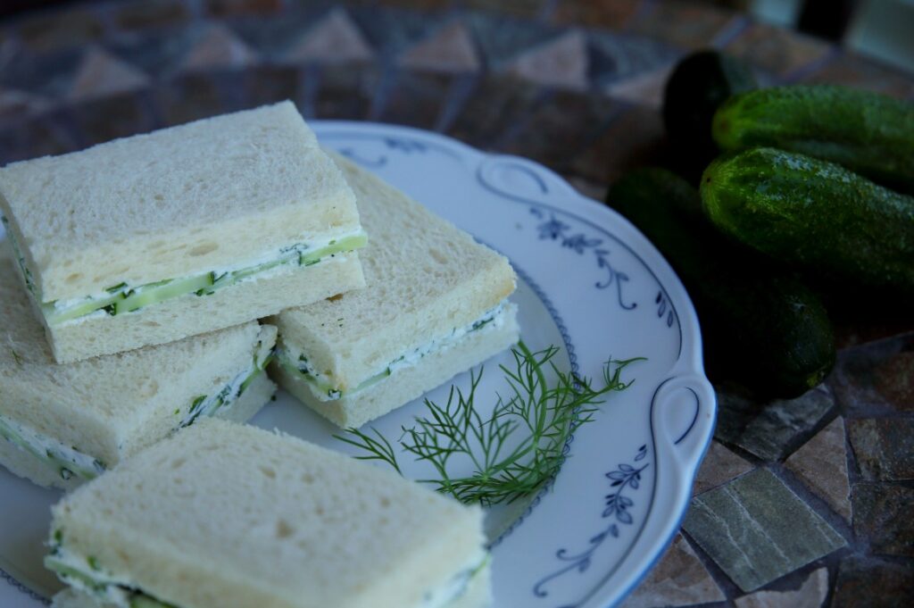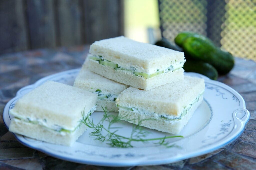 The British cucumber sandwich originated in colonial India, where it was served as a light snack with tea. From there, it moved to Britain, where it is associated with the aristocracy and five o’clock tea through pop culture. It is indeed served with tea in the expensive hotels in London.
